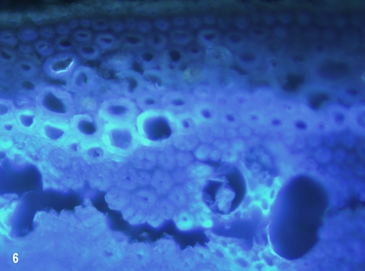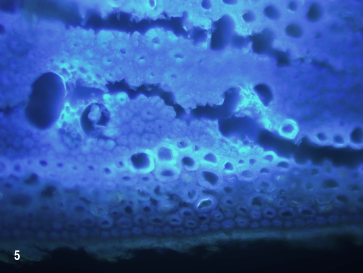 Stereoscopic images 1-3 depict reeds with these characteristics which can be played immediately with a beautiful tone, while images 4-6 show reeds of lesser quality.